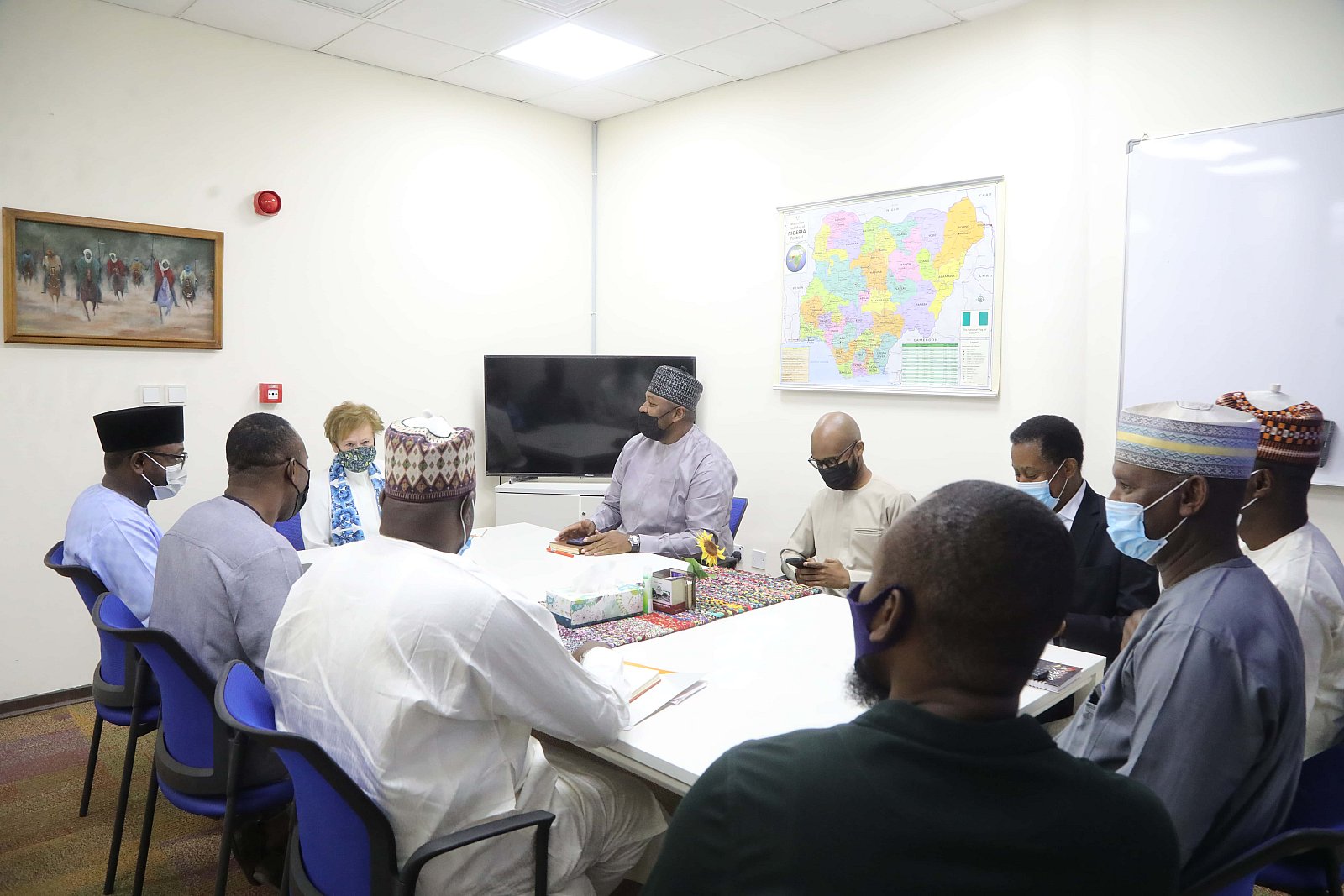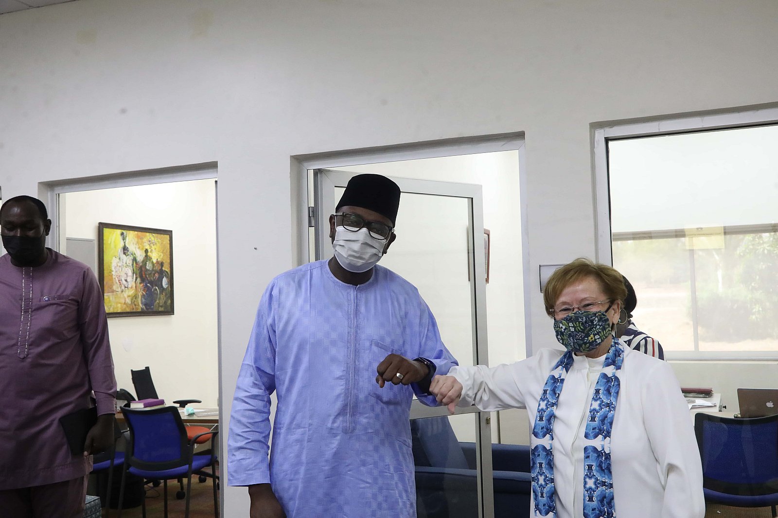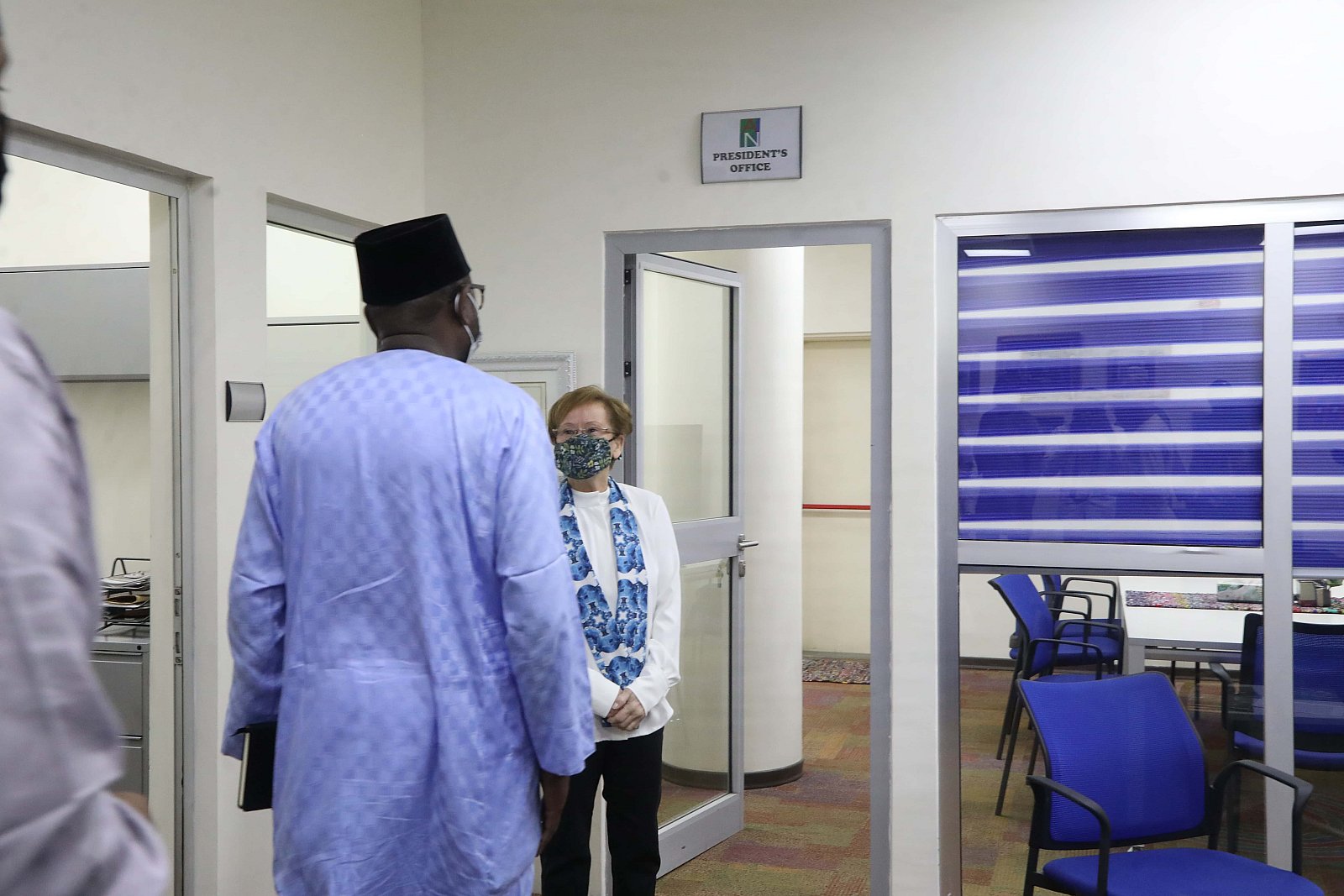 Dr. Umar Abubakar Hashindu, Managing Director, Yola Electricity Distribution during a courtesy visit to AUN, received by President Margee Ensign