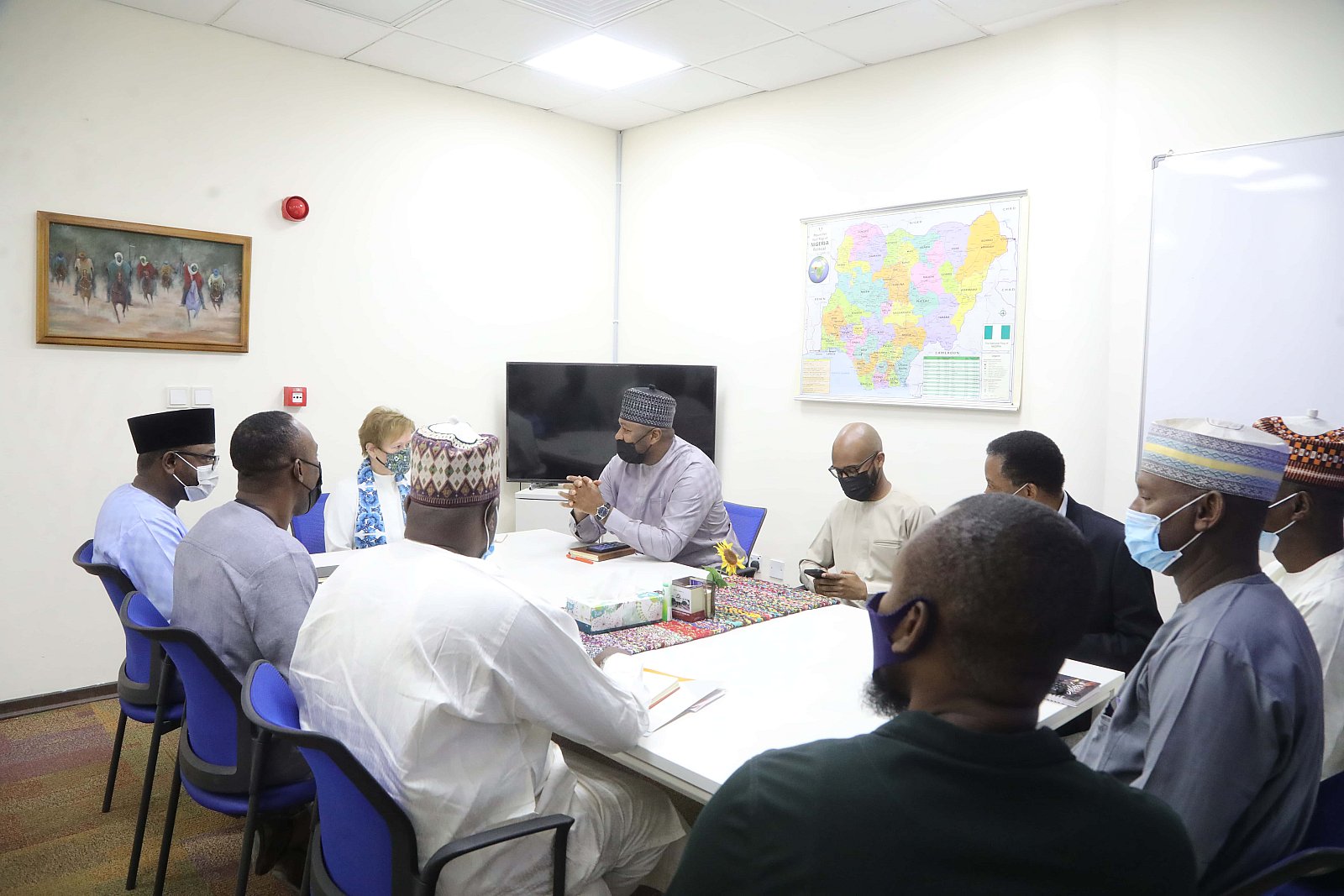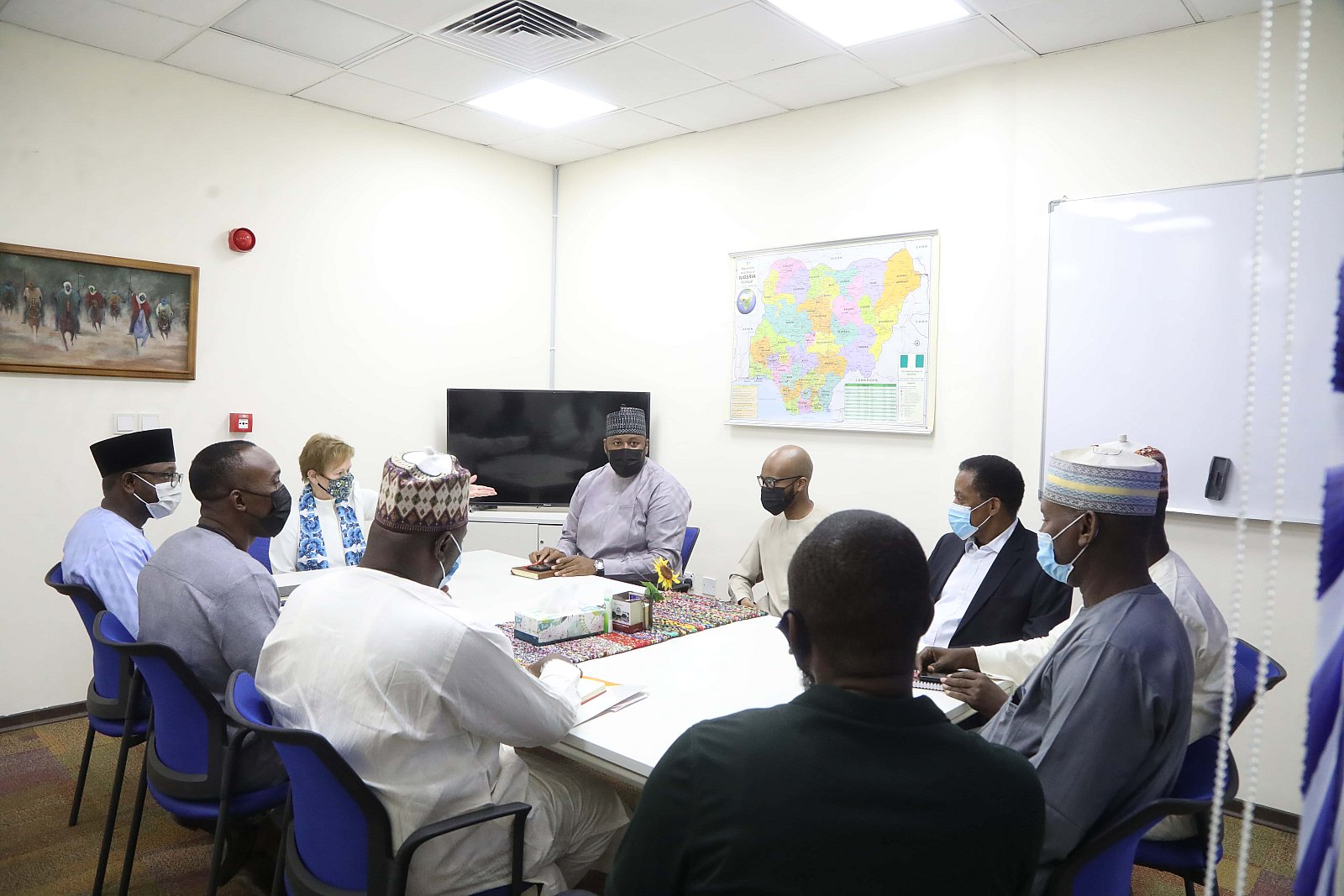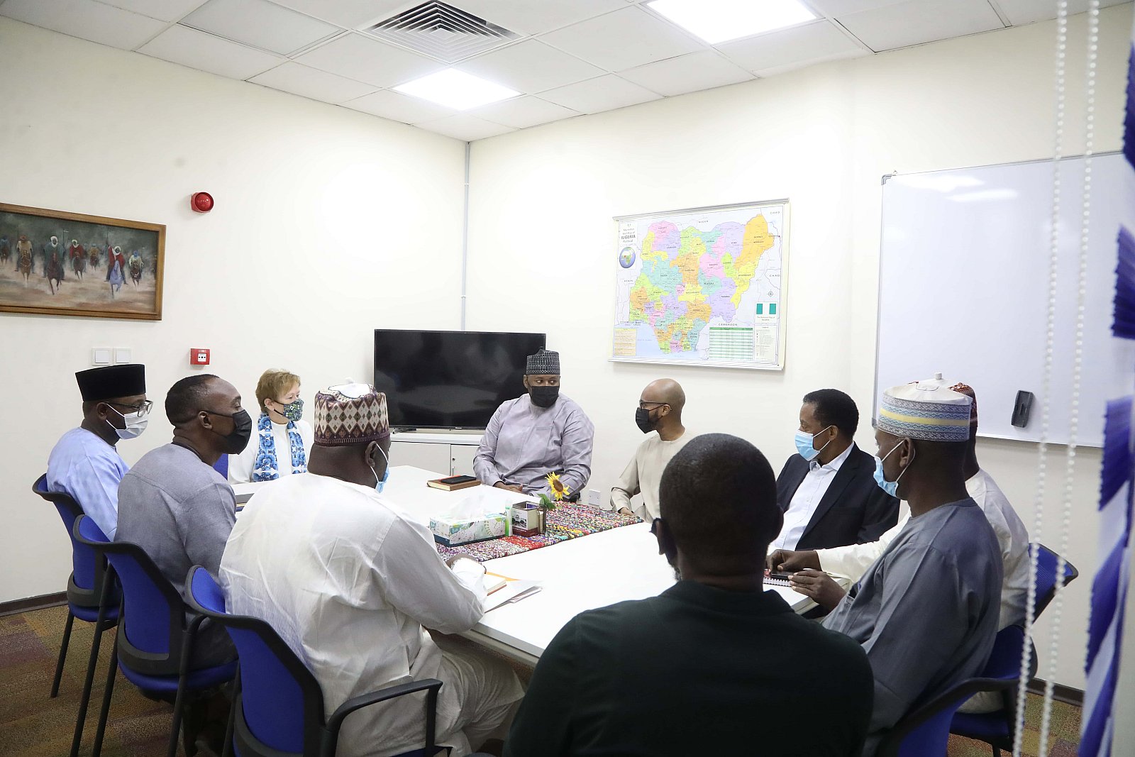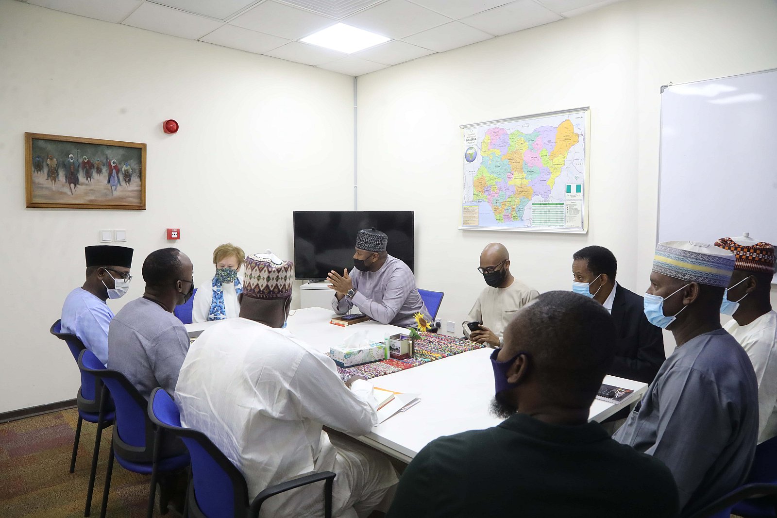 Dr. Umar Abubakar Hashindu, Managing Director, Yola Electricity Distribution during a courtesy visit to AUN, received by President Margee Ensign