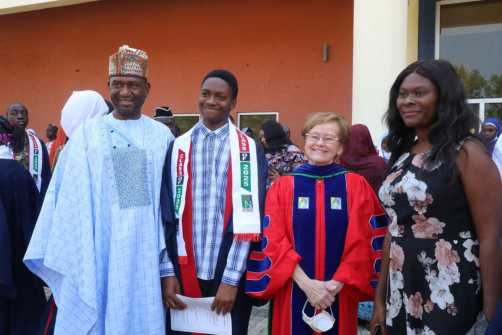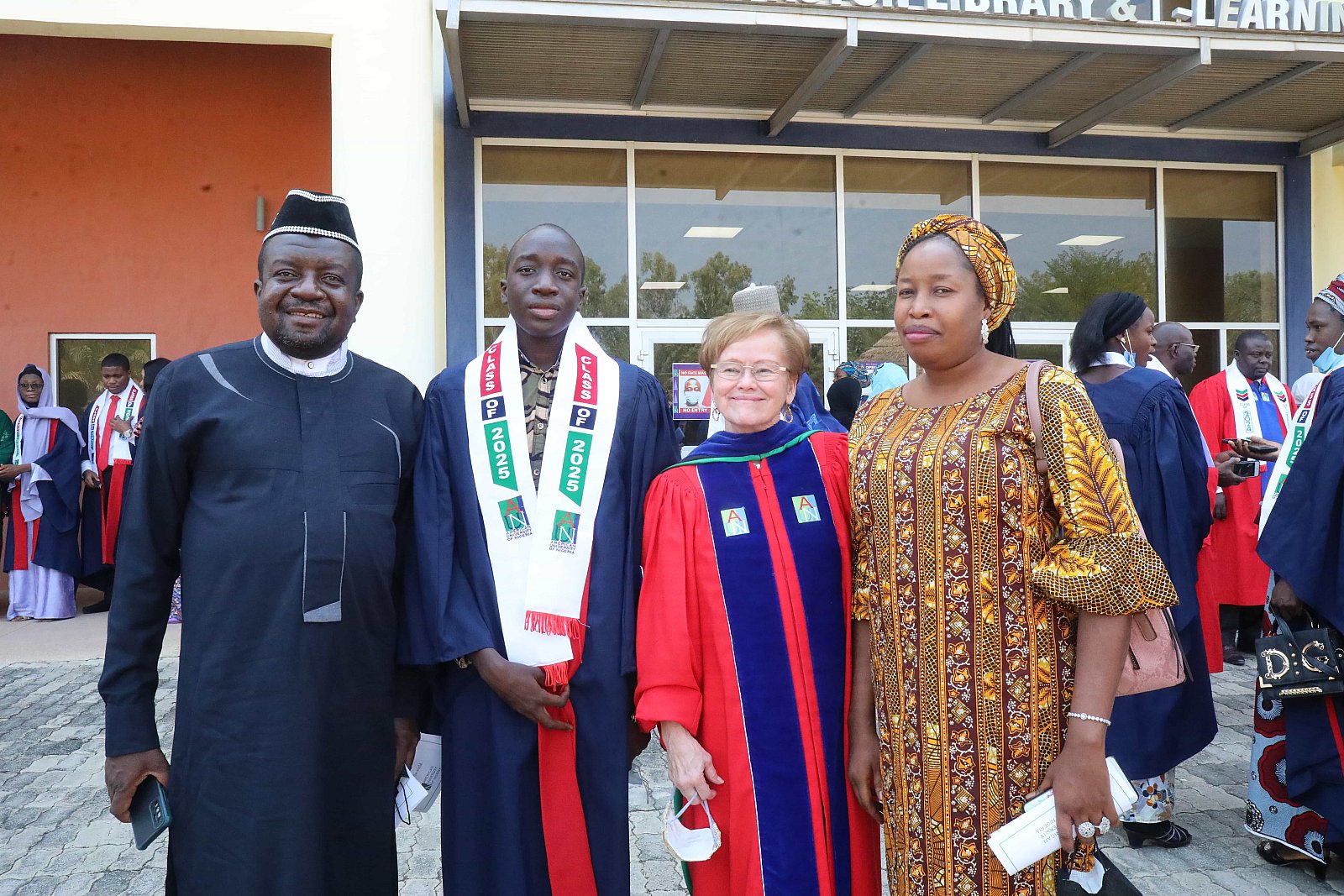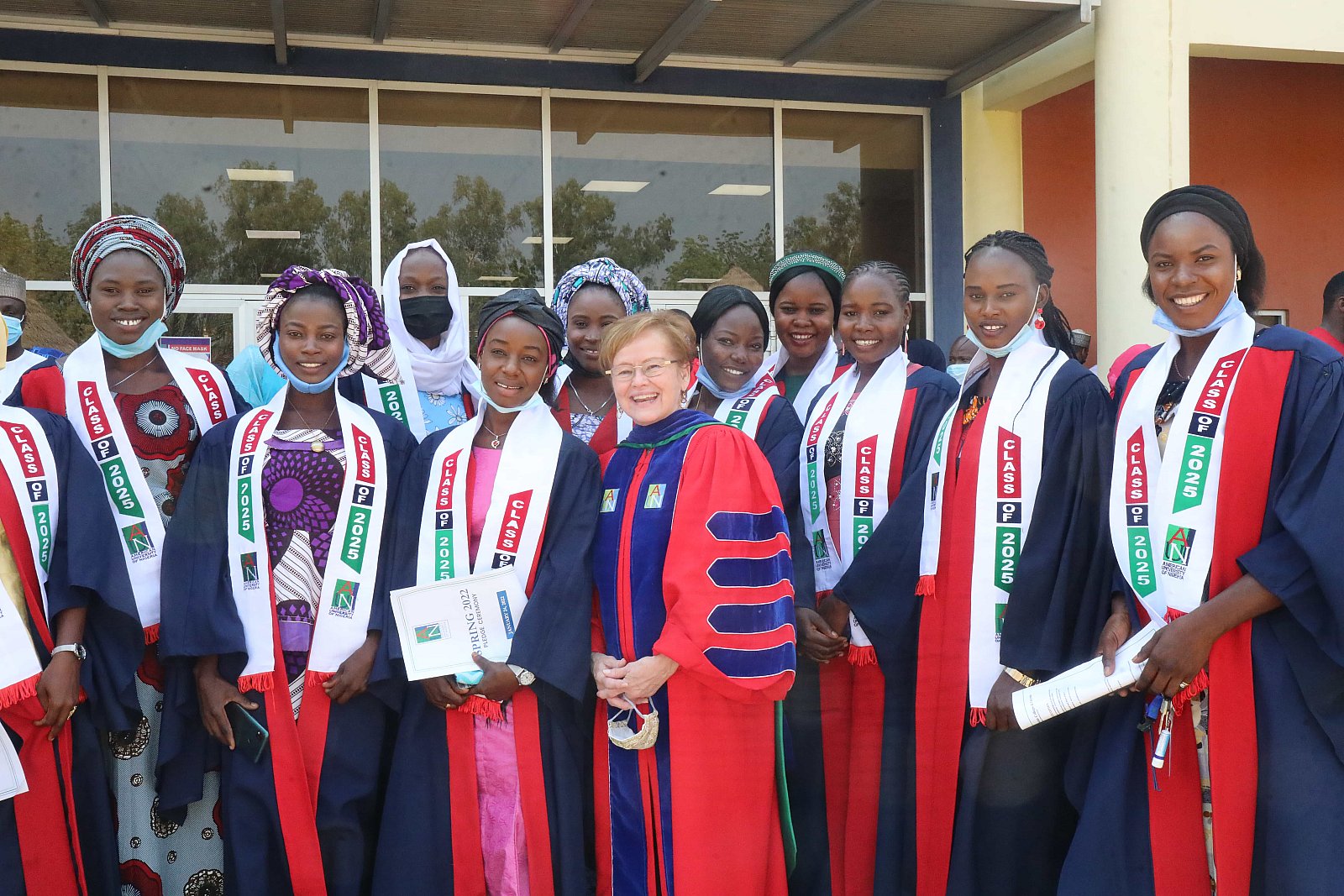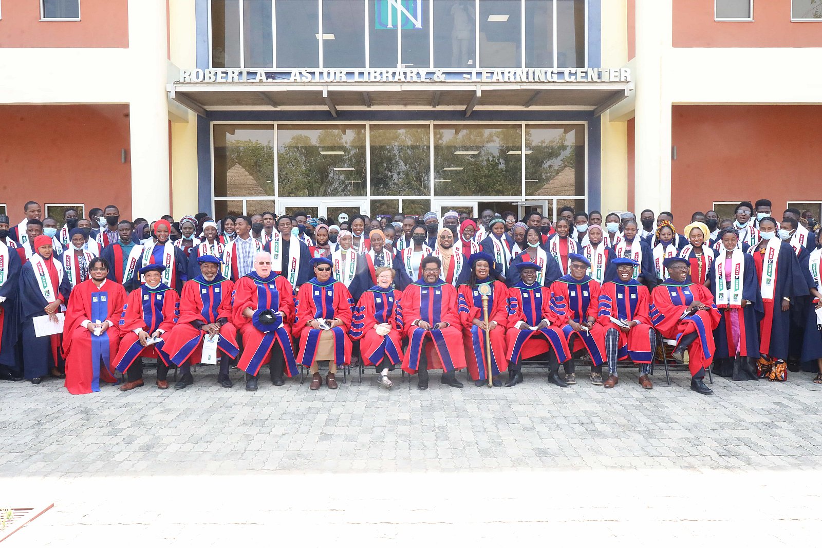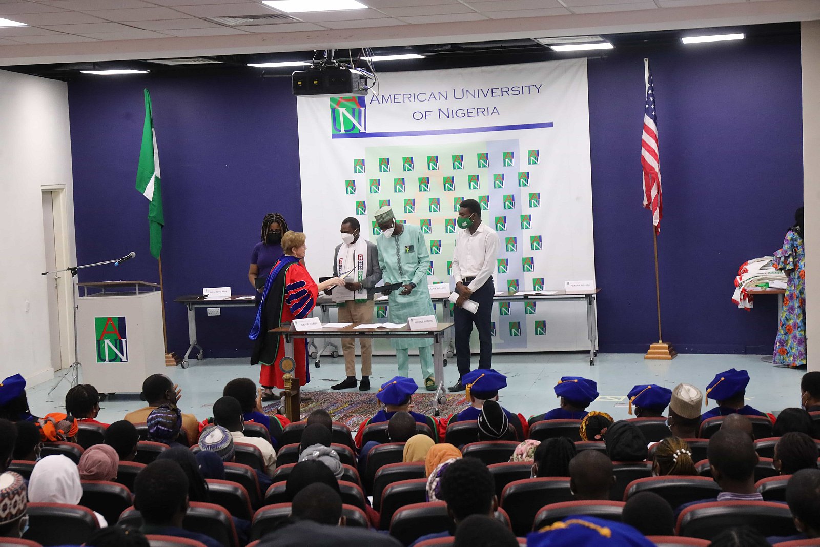 Newly matriculated students with AUN President , Margee Ensign, faculty and family members.