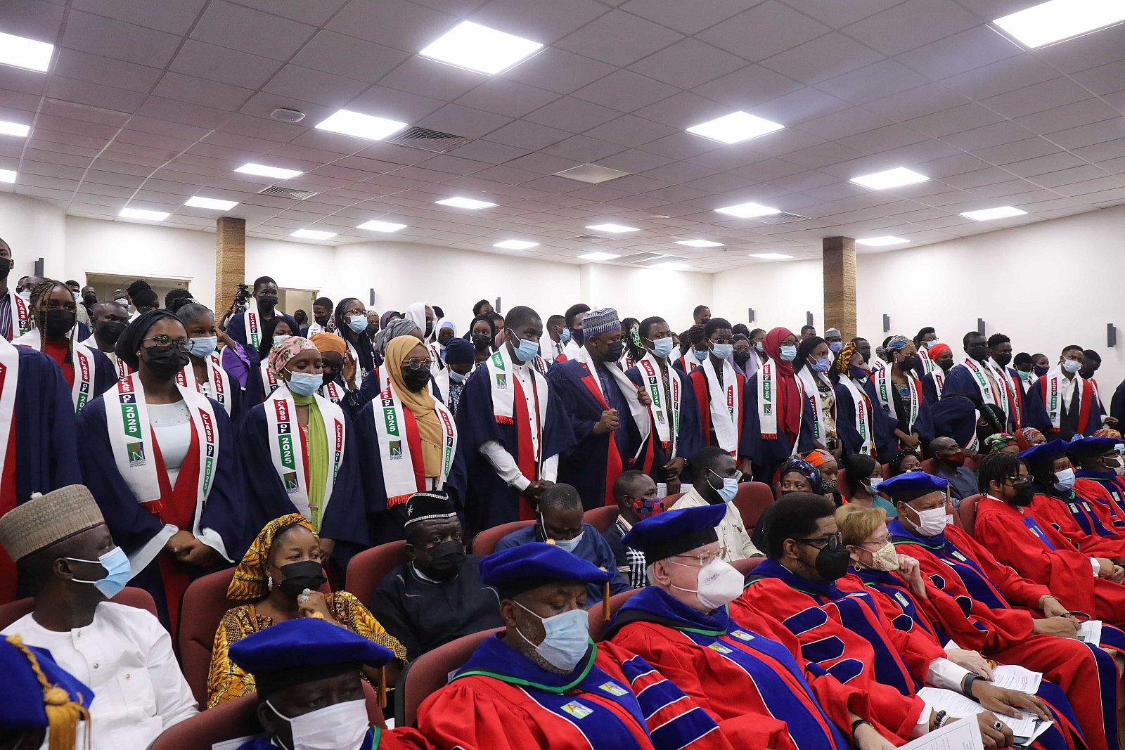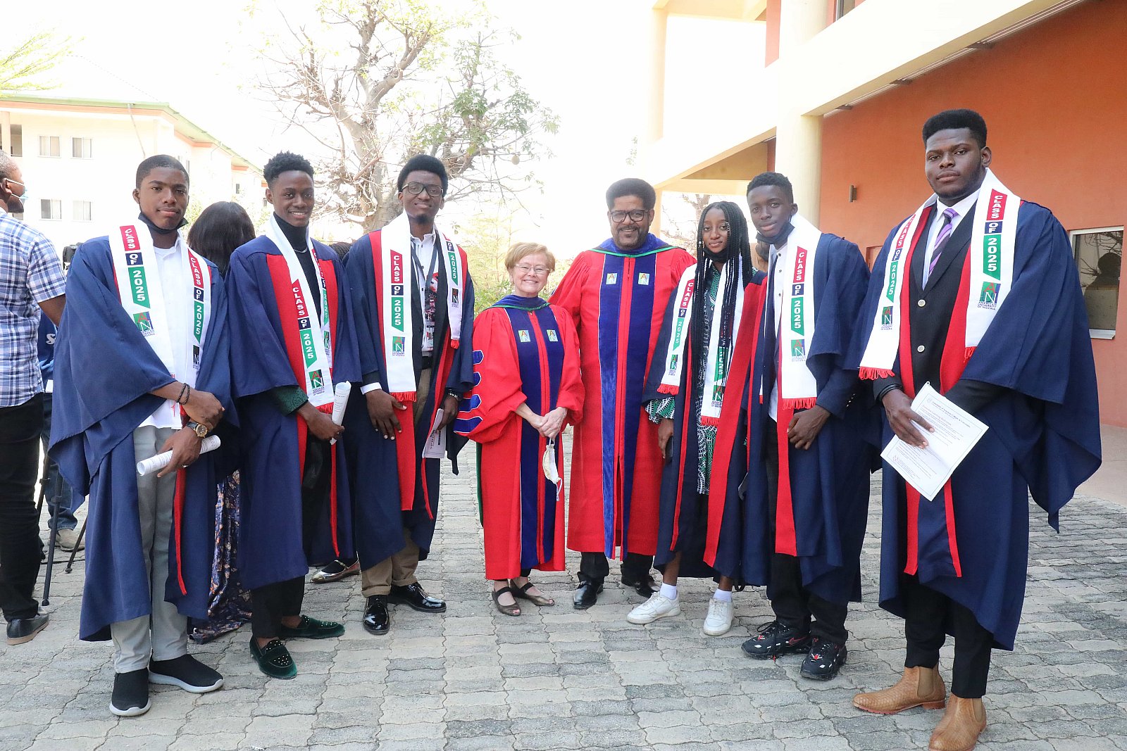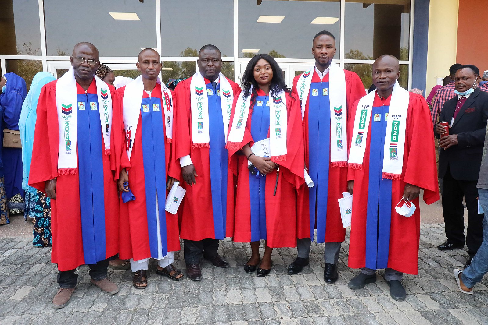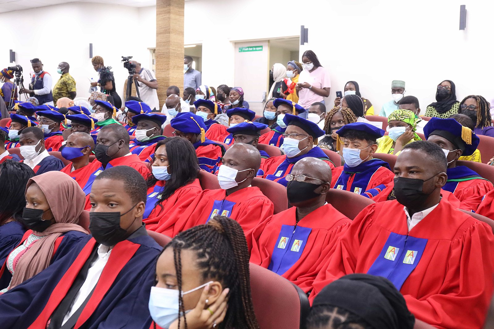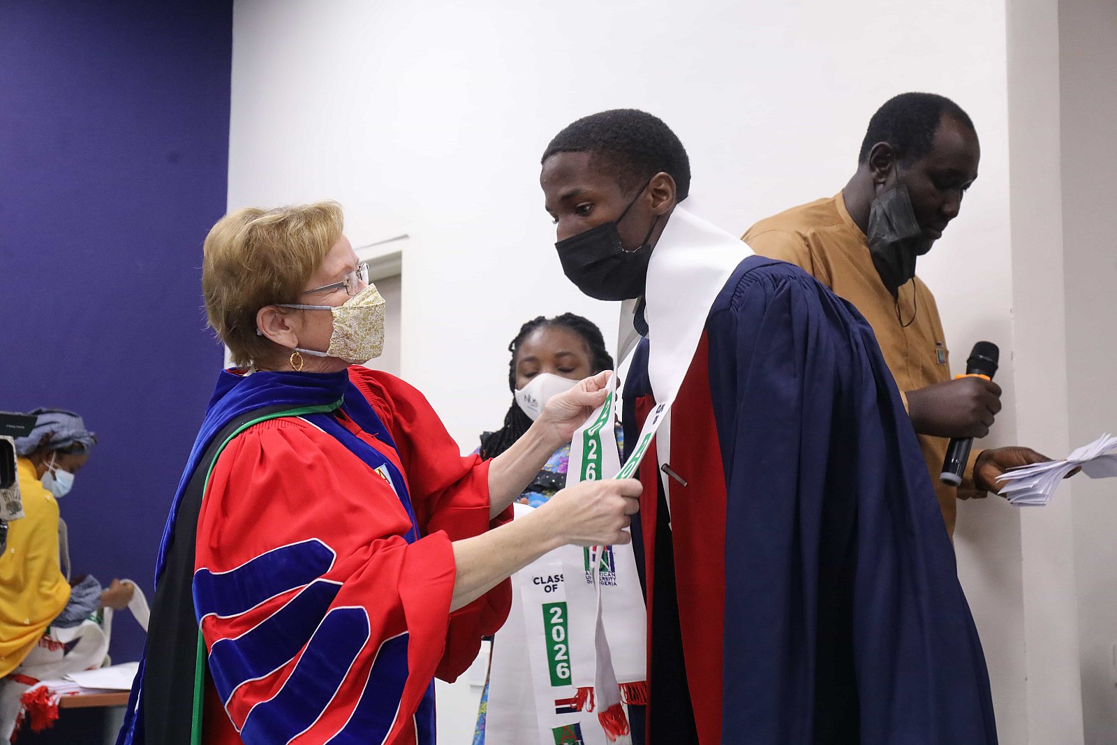 Newly matriculated students with AUN President , Margee Ensign, faculty and family members.