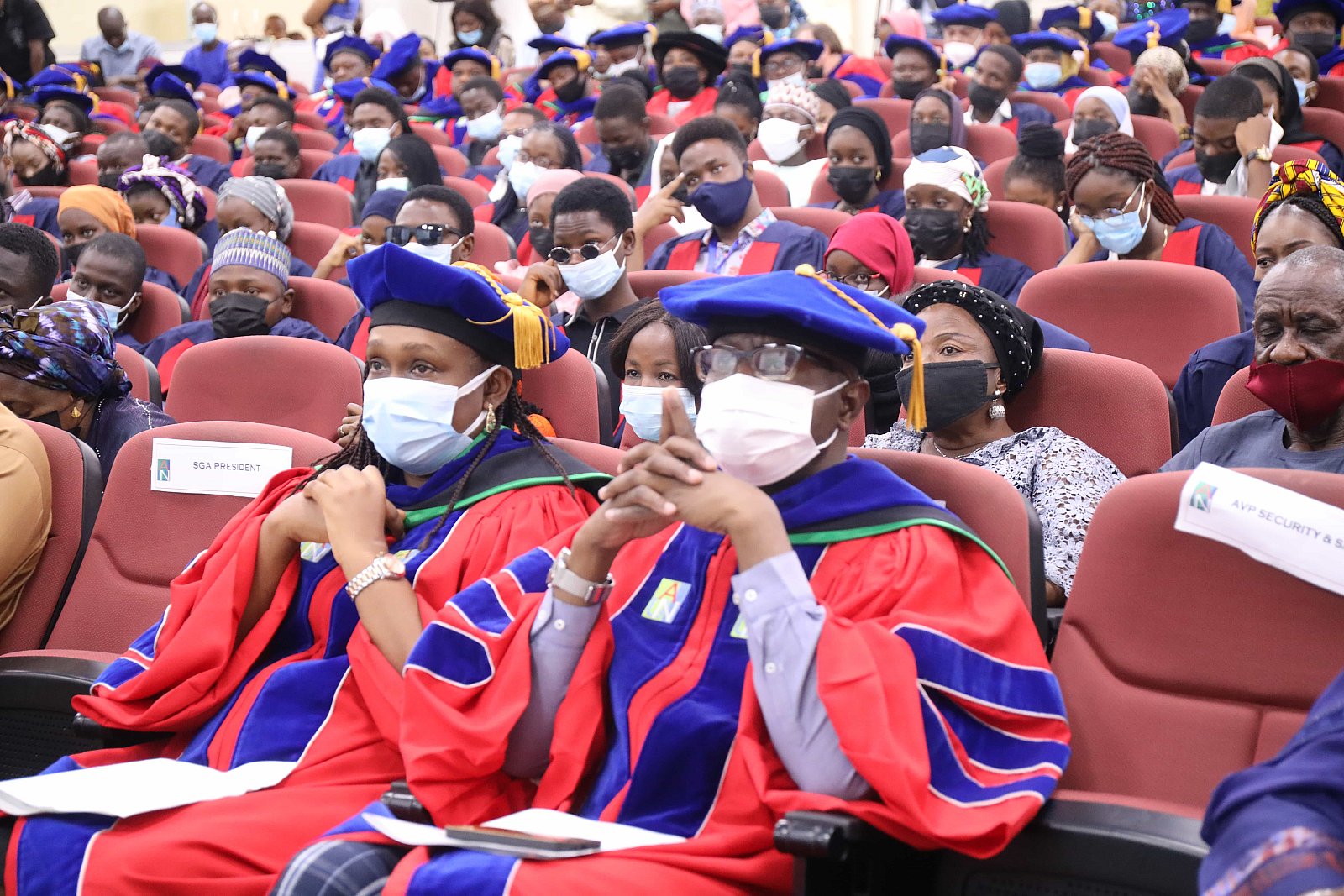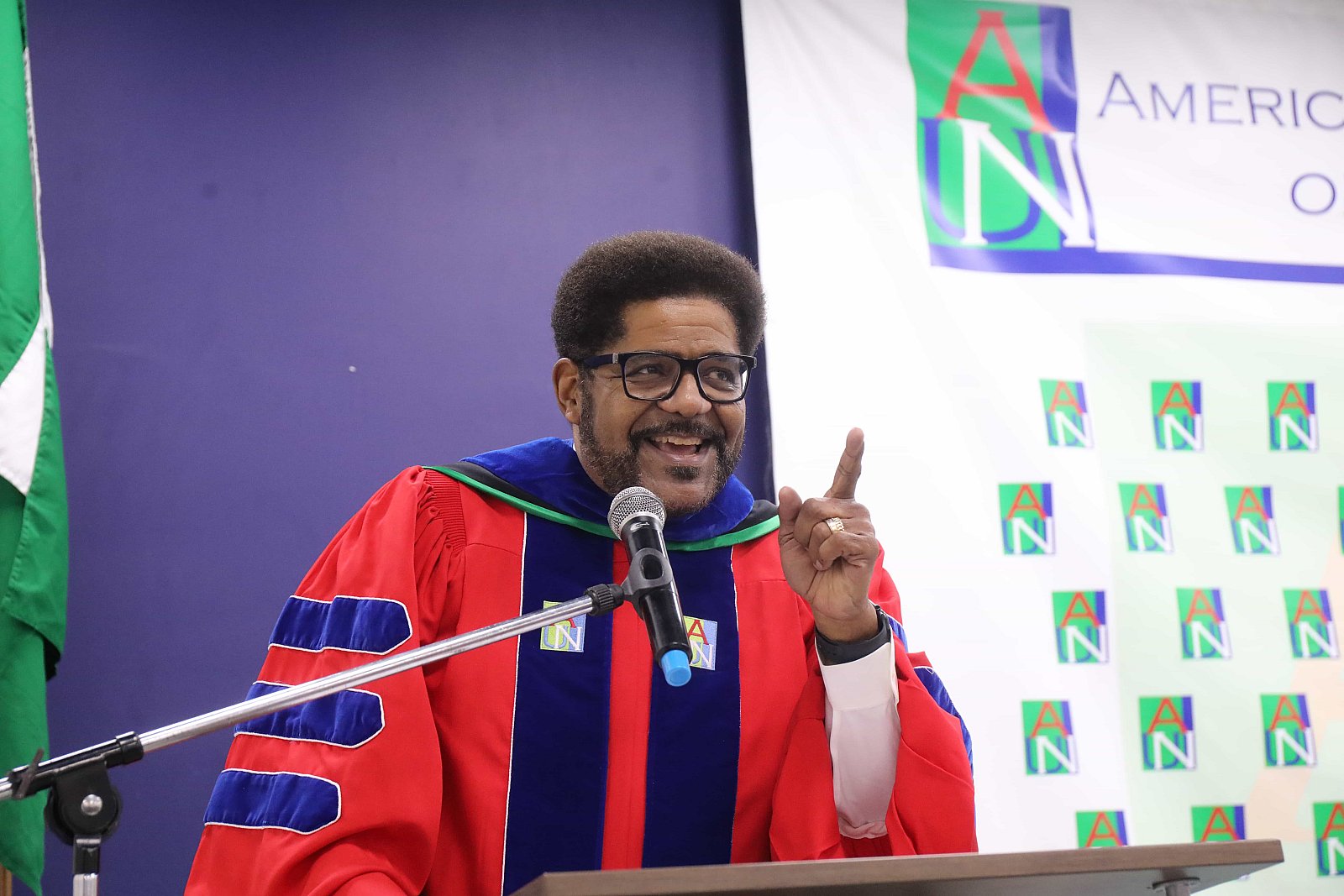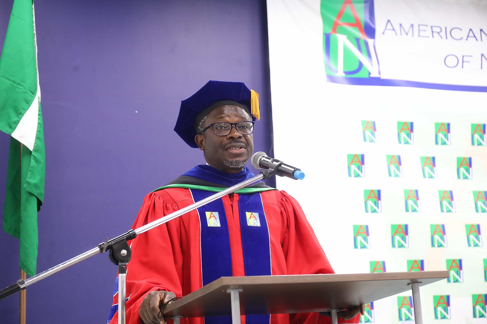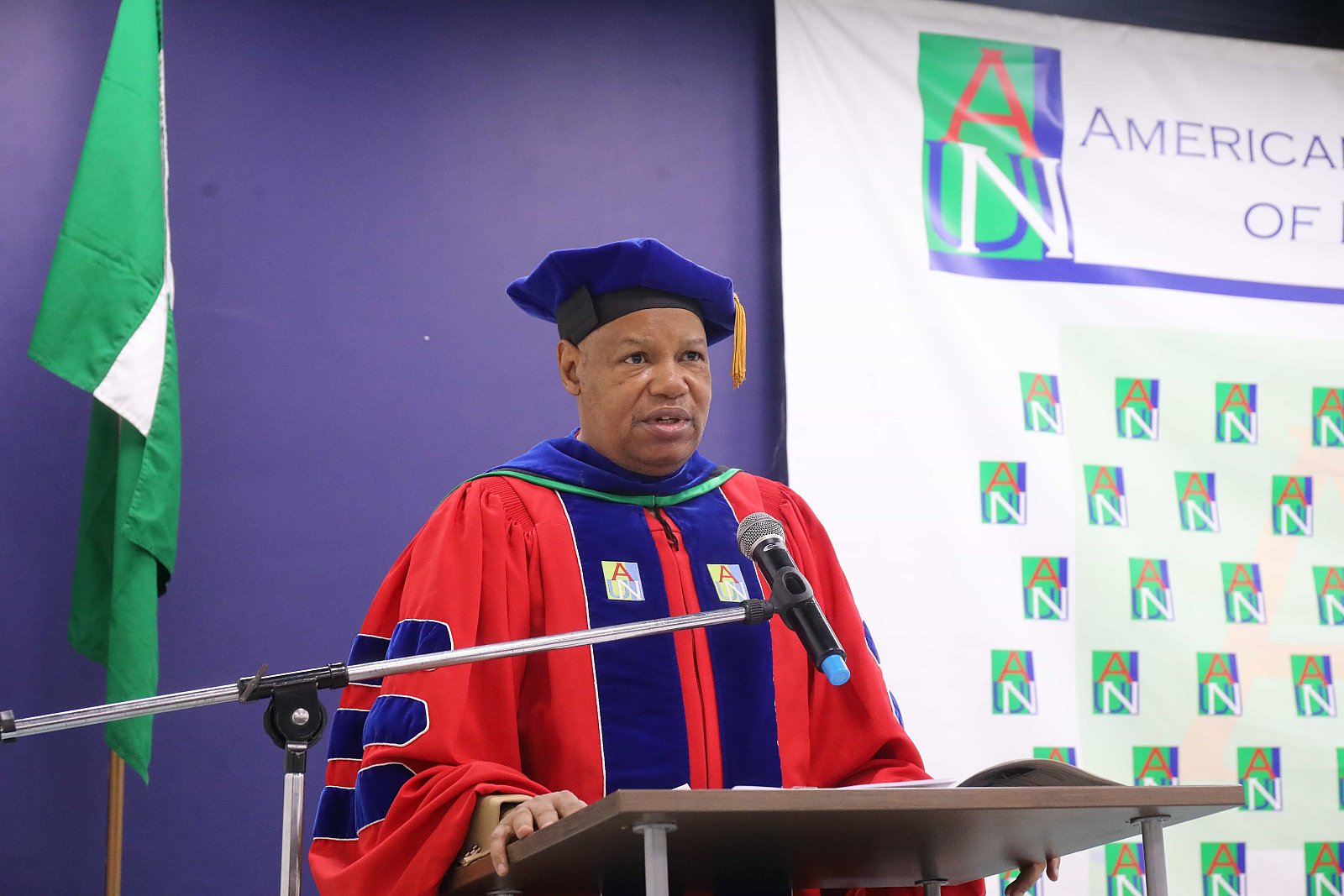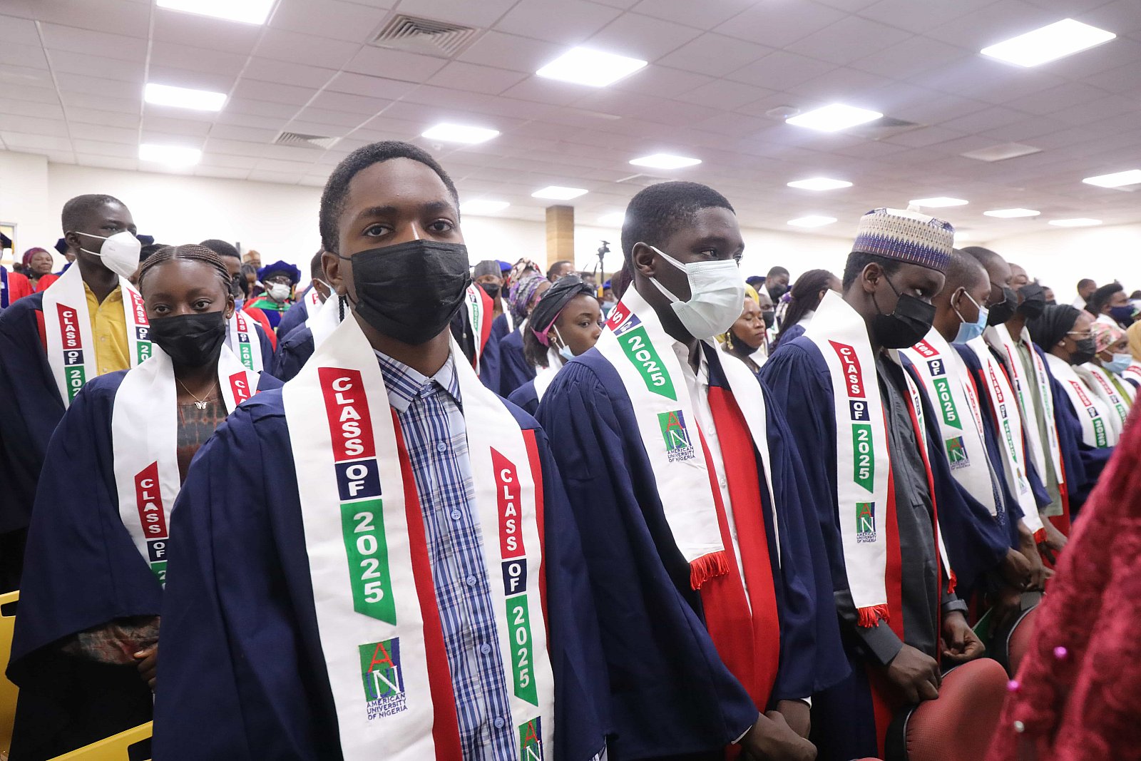 Newly matriculated students with AUN President , Margee Ensign, faculty and family members.