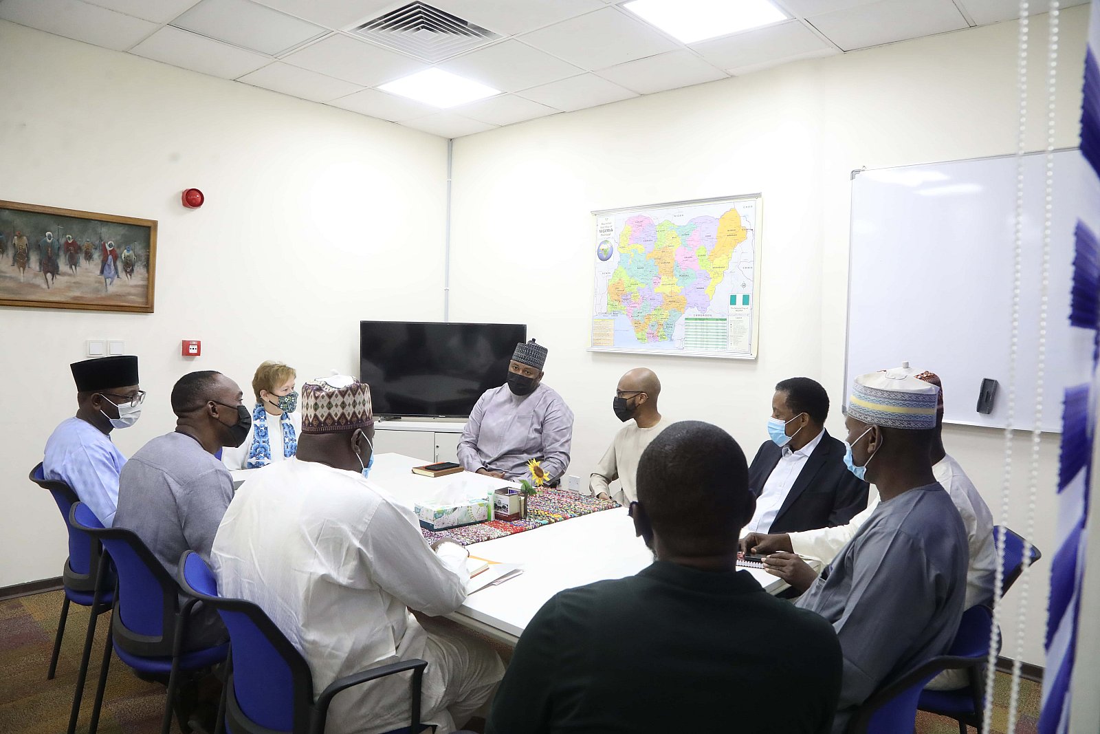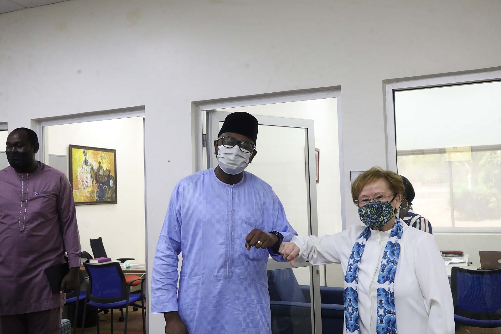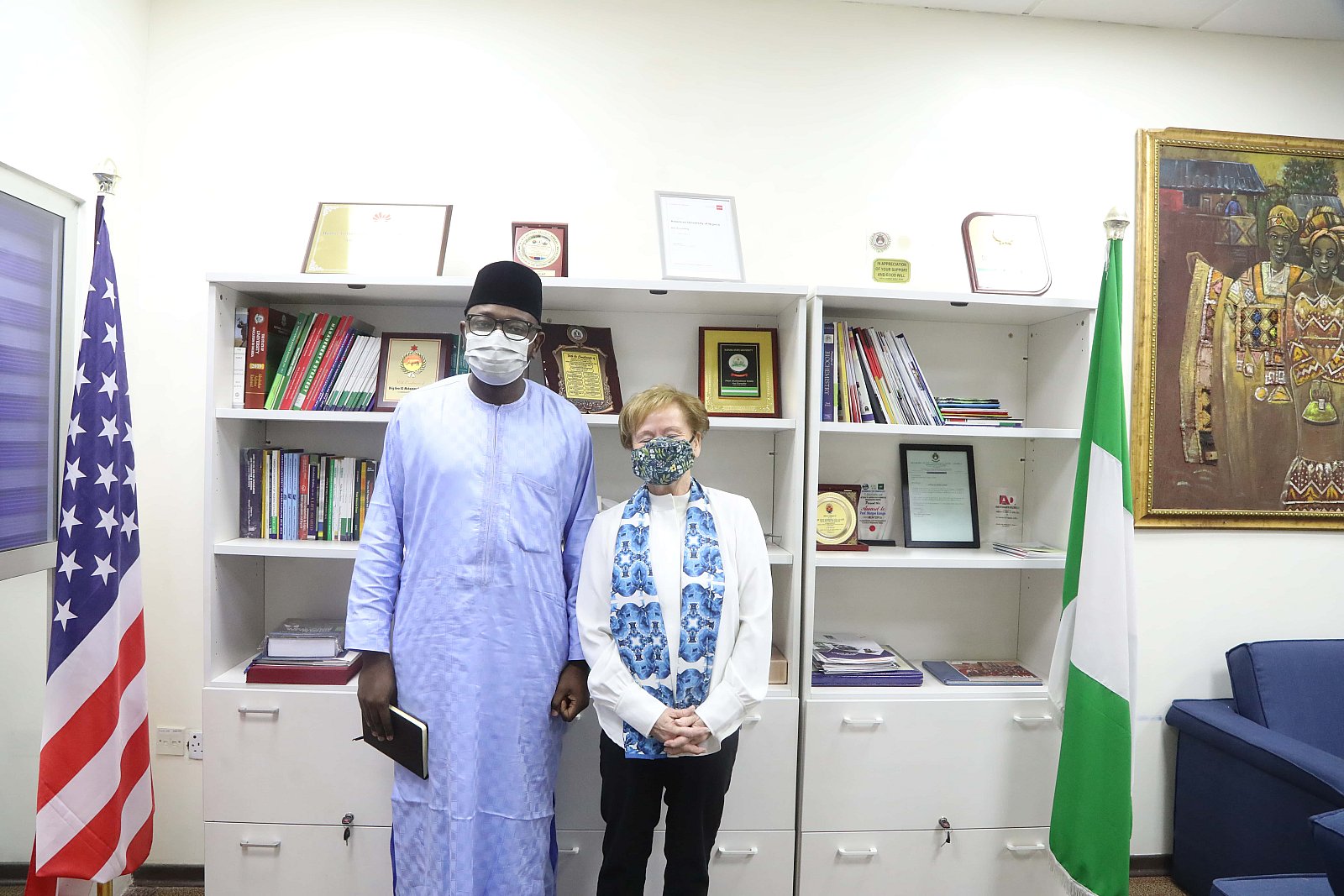 Dr. Umar Abubakar Hashindu, Managing Director, Yola Electricity Distribution during a courtesy visit to AUN, received by President Margee Ensign