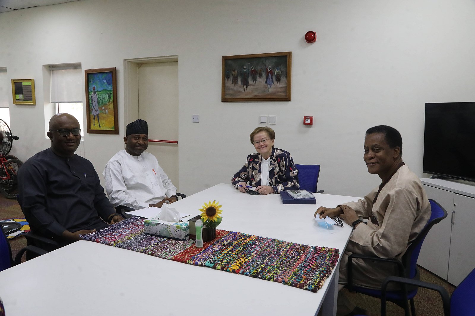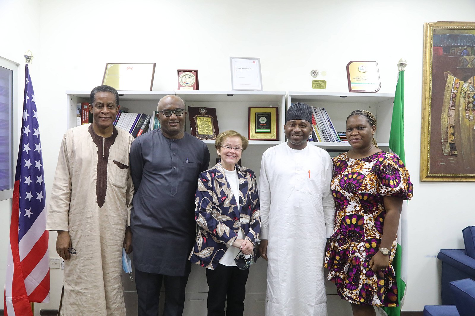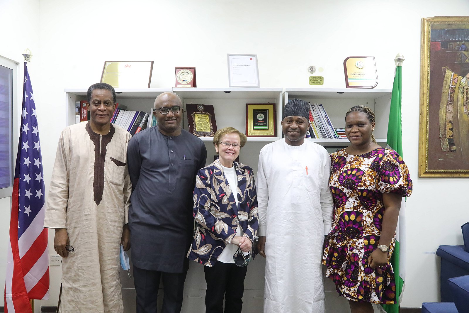 President Margee Ensign (2nd R) receives management of Fidelity Bank, Yola Town Branch.