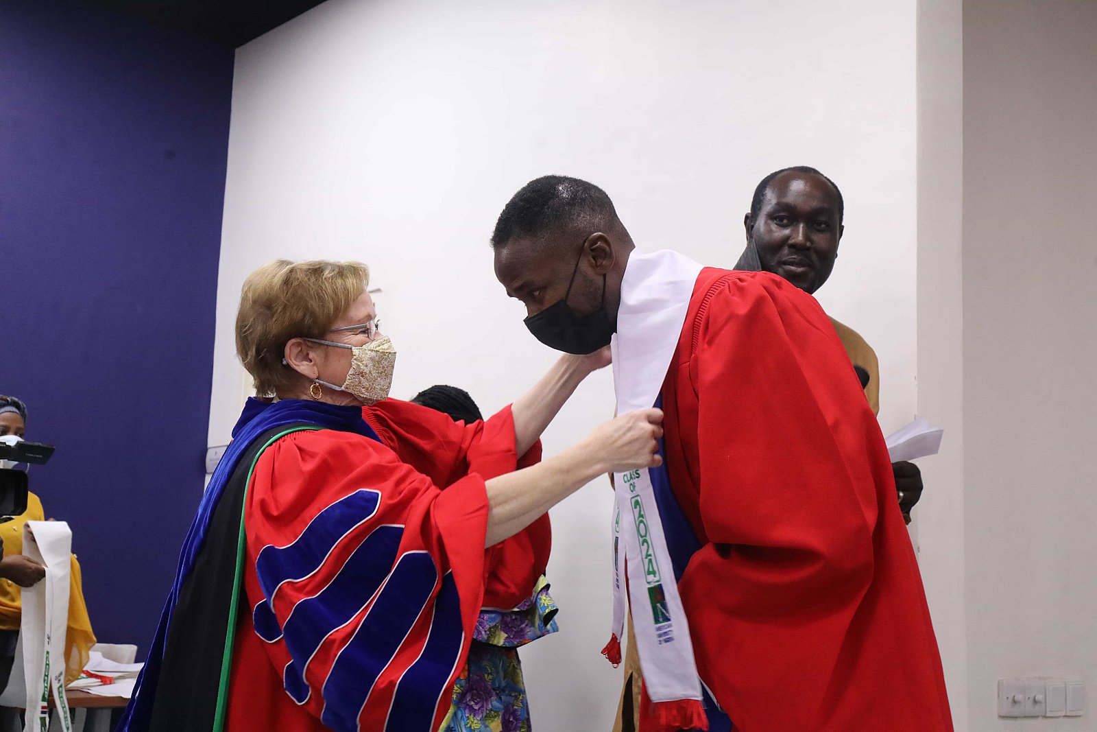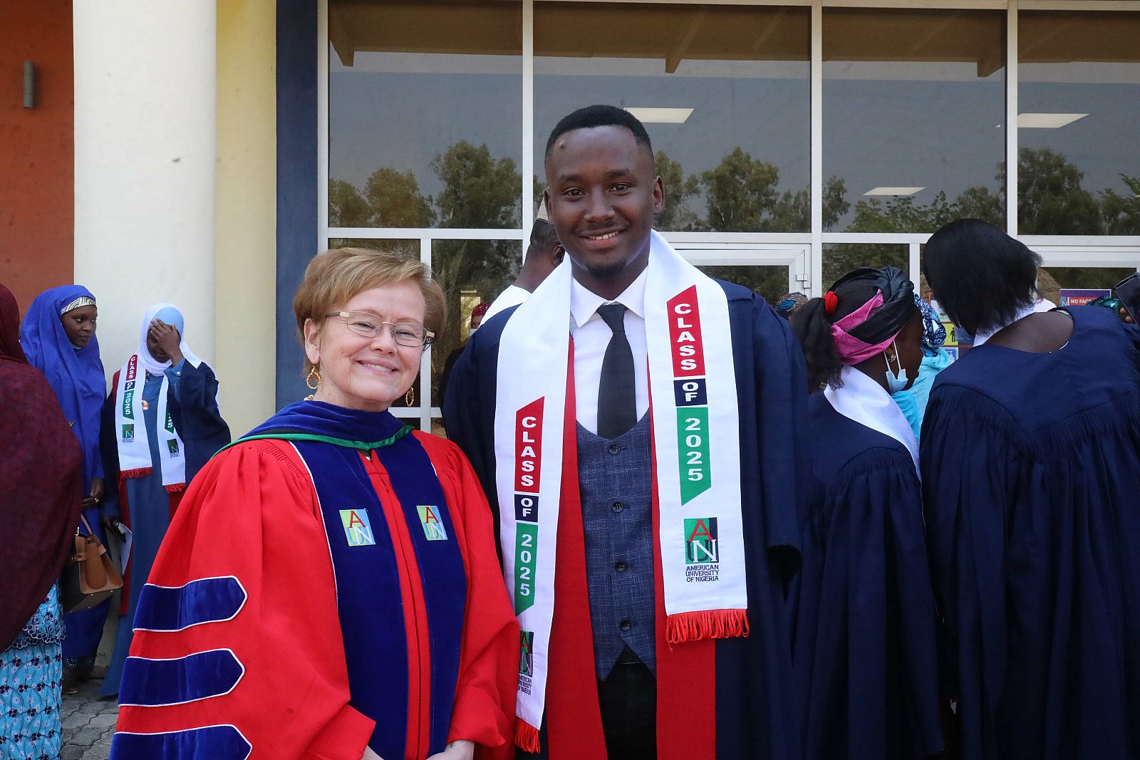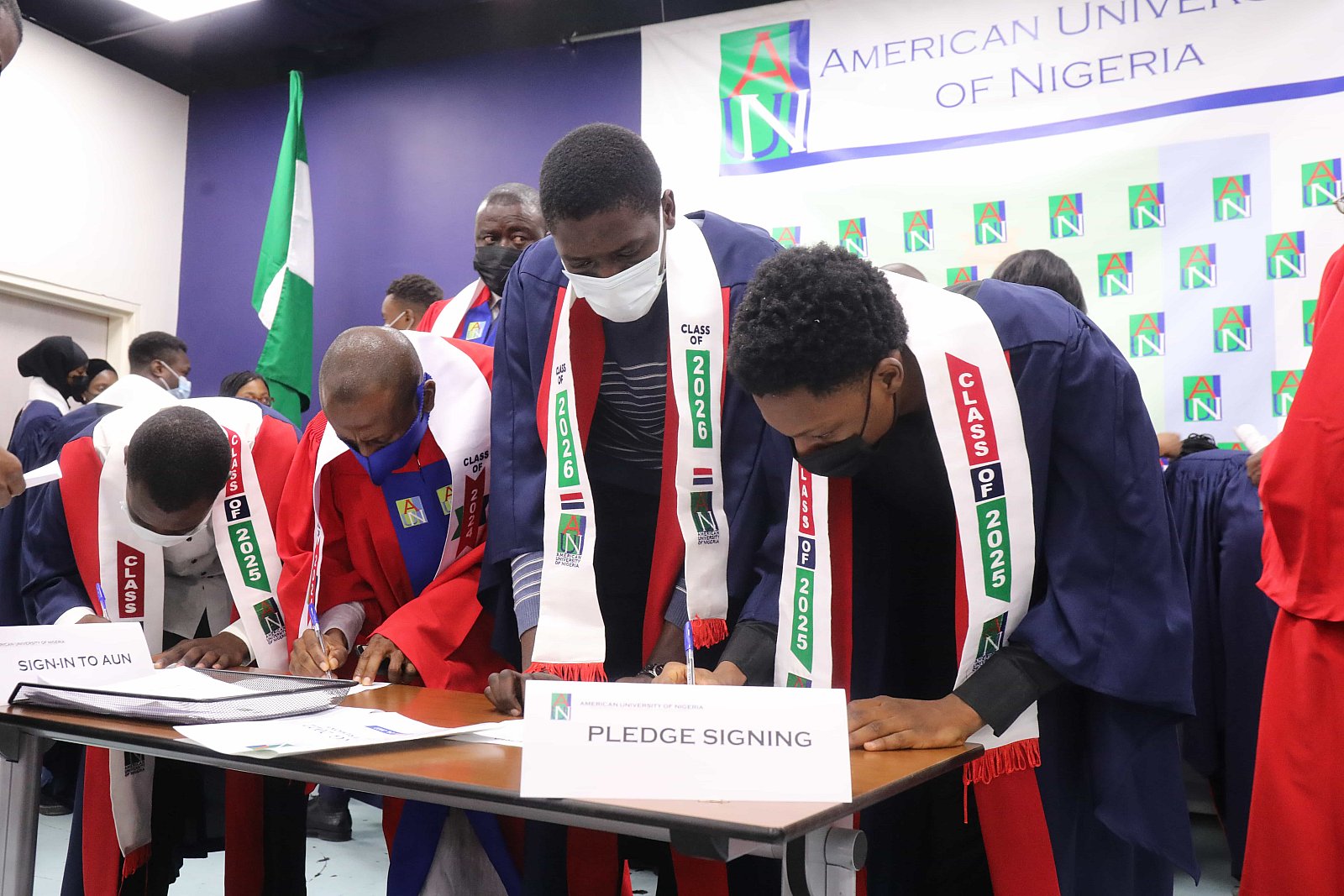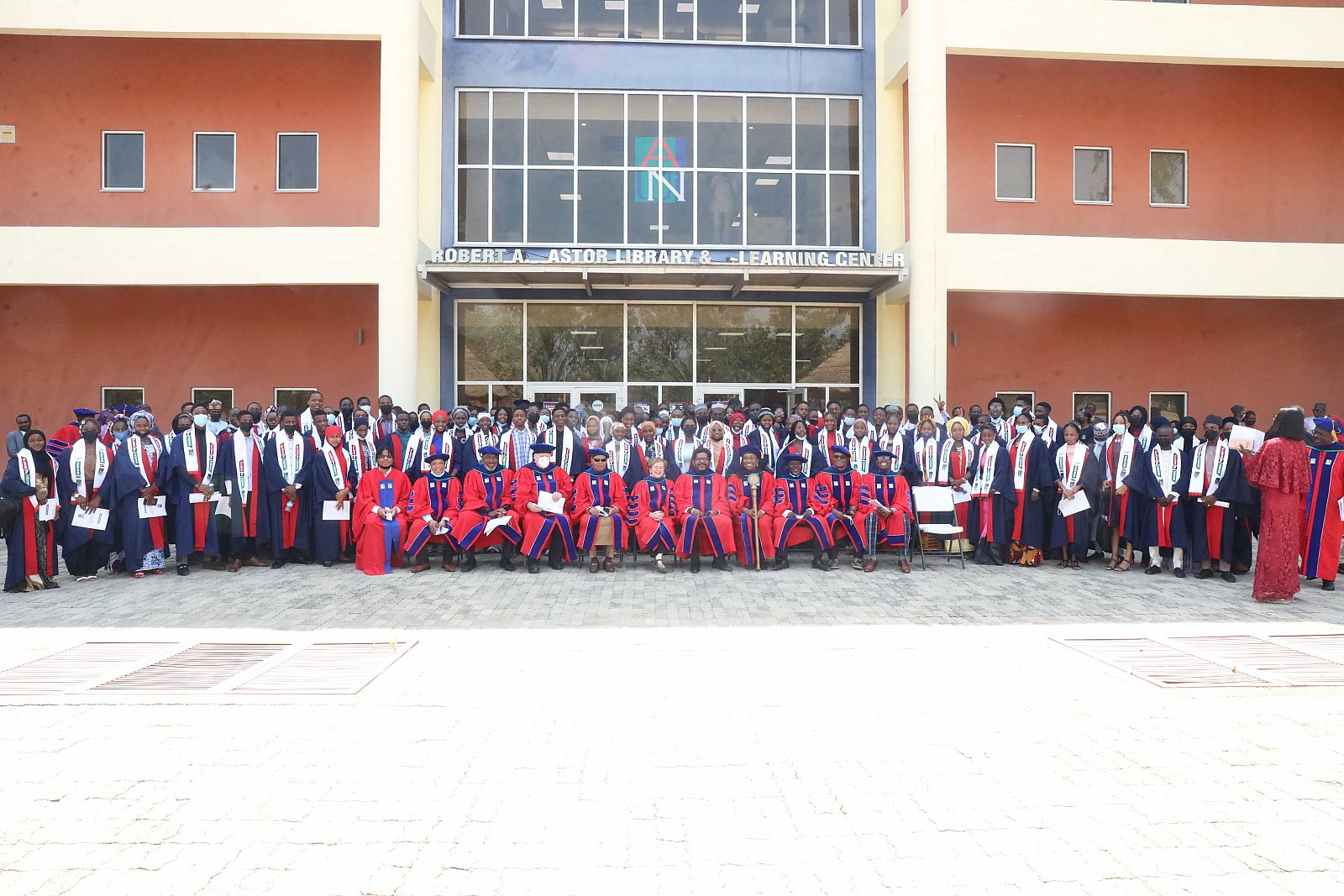 Newly matriculated students with AUN President , Margee Ensign, faculty and family members.