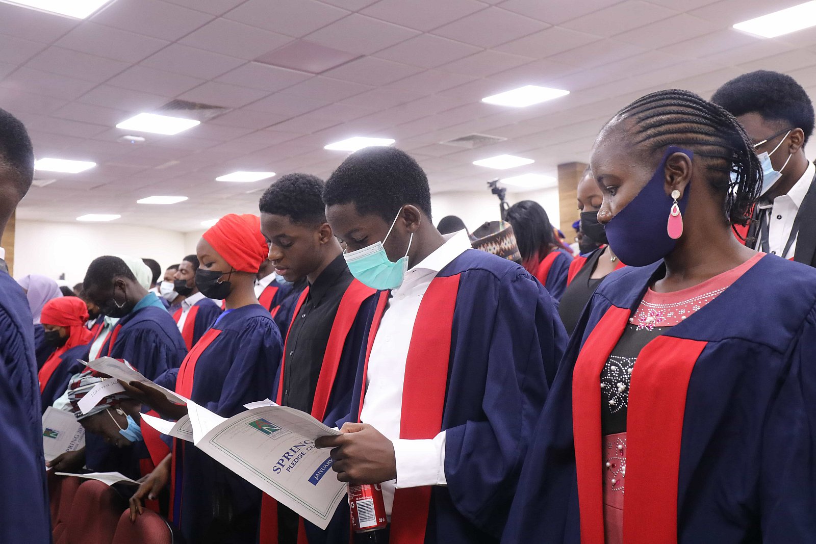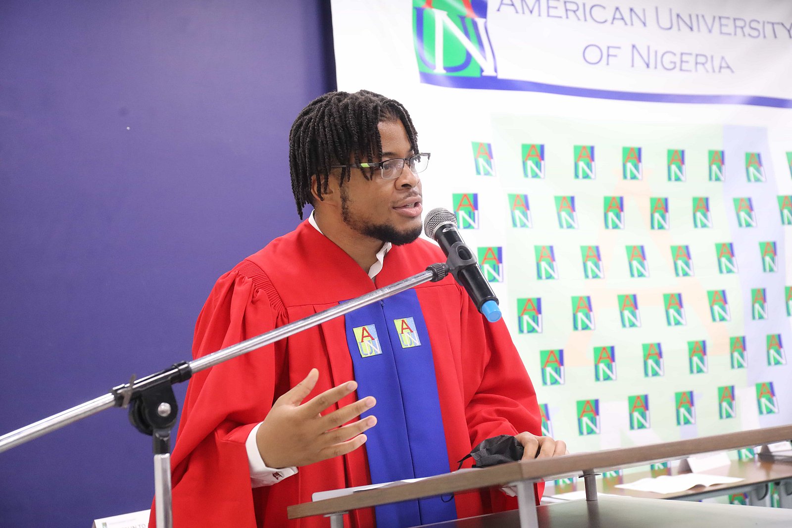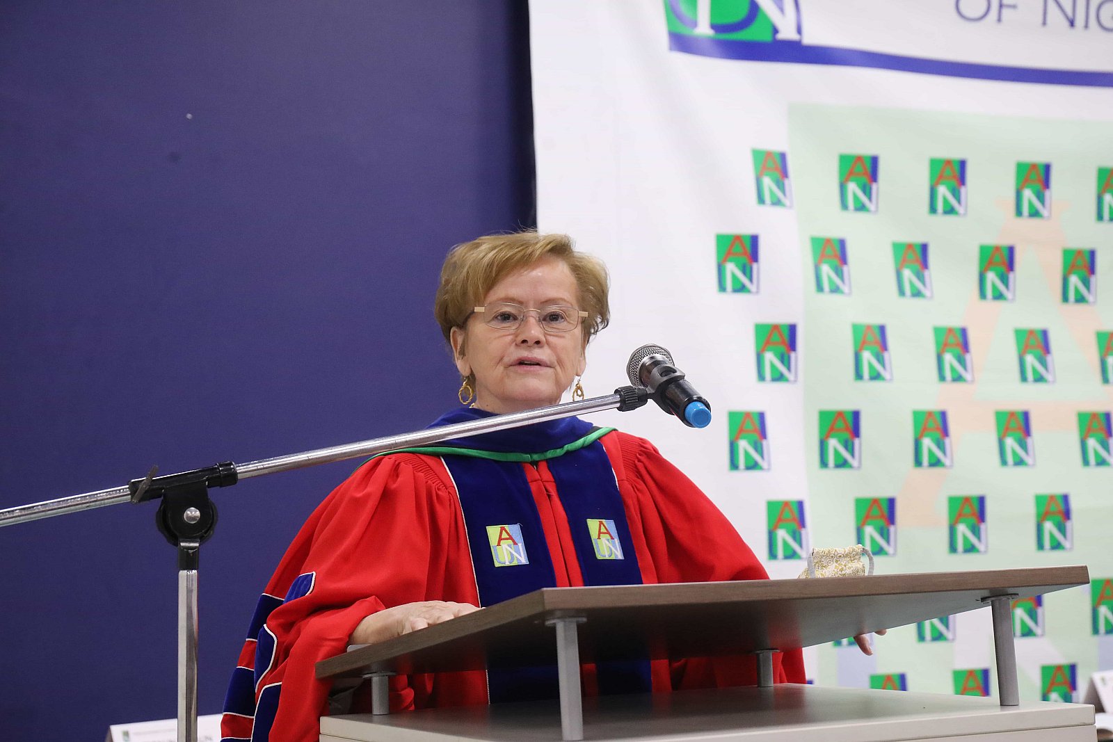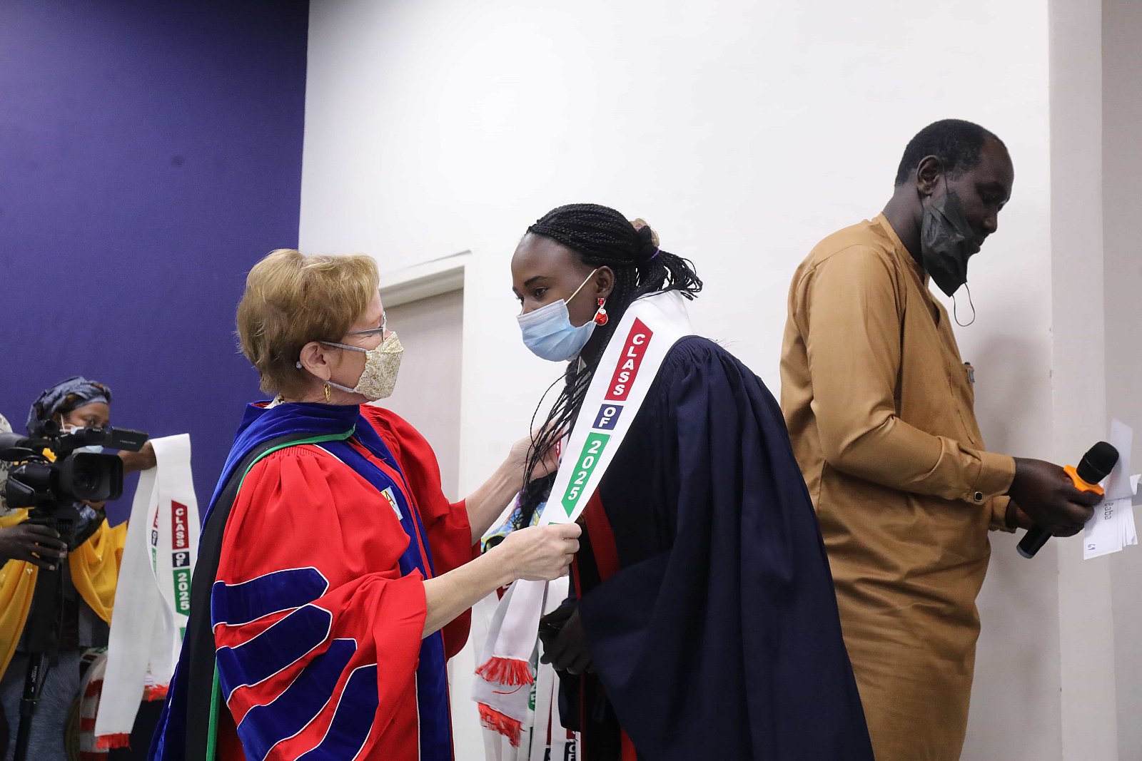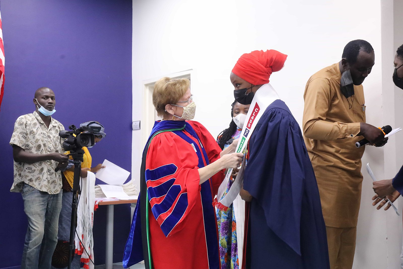 Newly matriculated students with AUN President , Margee Ensign, faculty and family members.
